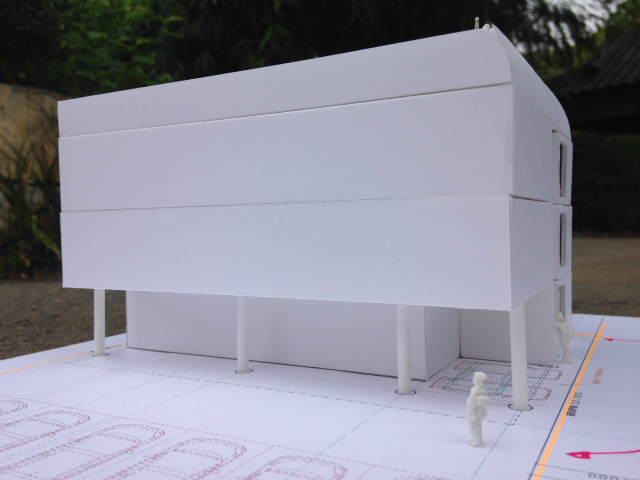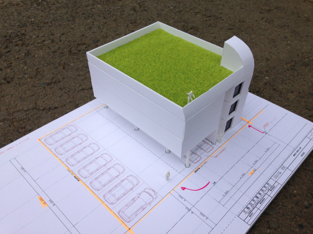 ピロティ状の一階ファサードとペントハウスが特徴的なファサードを考えてみました(^^)/~~~
