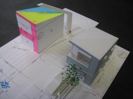 北側斜線が厳しいので…屋根をねじりながら高さを決定していった…