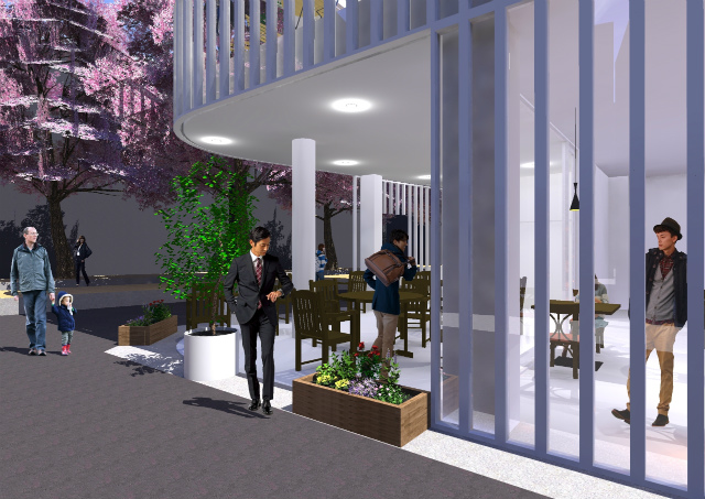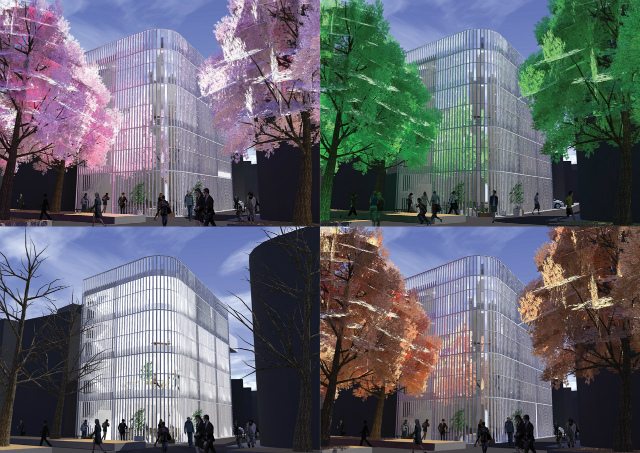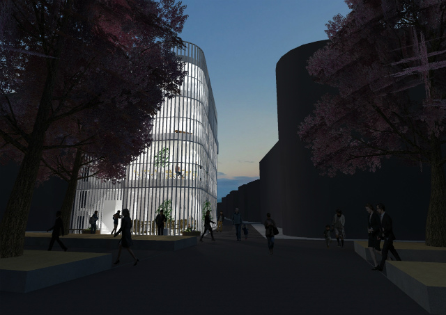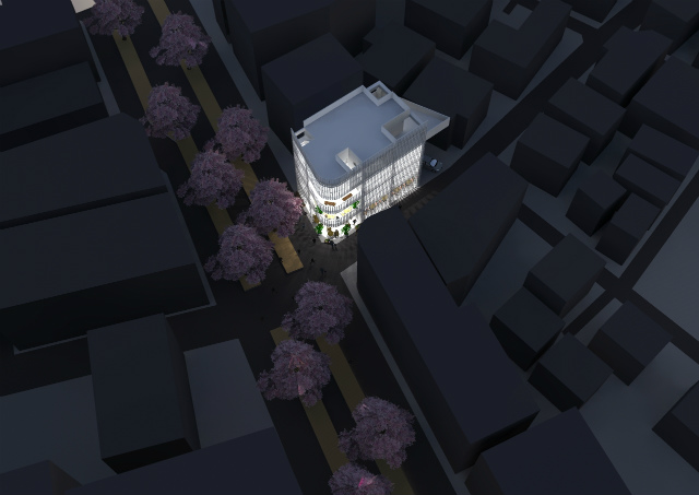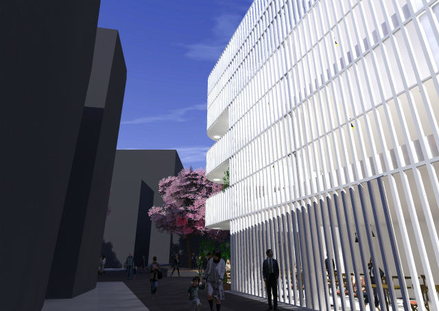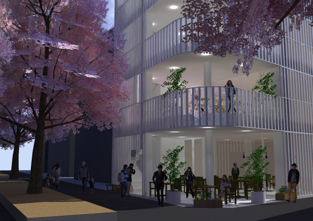 鉄筋コンプラストコンクリート造4階建て…桜並木を取り込むファサード…共用部分は半屋外的にも使えるように…(^・^)