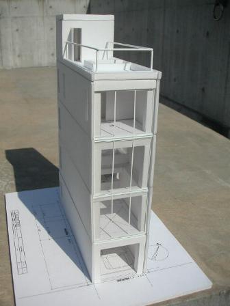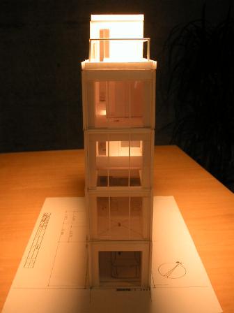 ■10坪の極小敷地に5F建ての住宅を考えました。商業地域のため廻りにはビルが立ち並ぶ非常に厳しい条件の場所です。