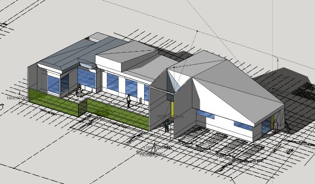 事務所と住宅を併せ持つ計画…まずはイメージ…敷地の中心にある中庭が住宅と事務所をあいまいにつなぐ計画です(^^)/~~~